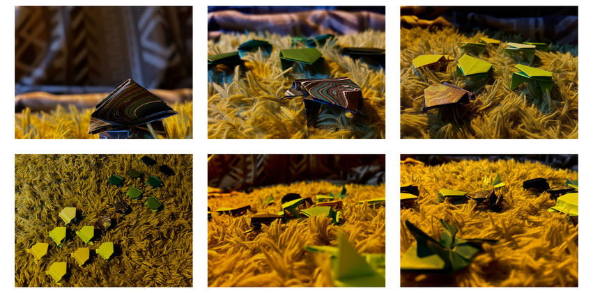 Origami Takeover - students are tasked with creating origami structures, then using them to create a story in ten photographs using their origami structures. At least one photograph must include all of their origami pieces for a take over effect.